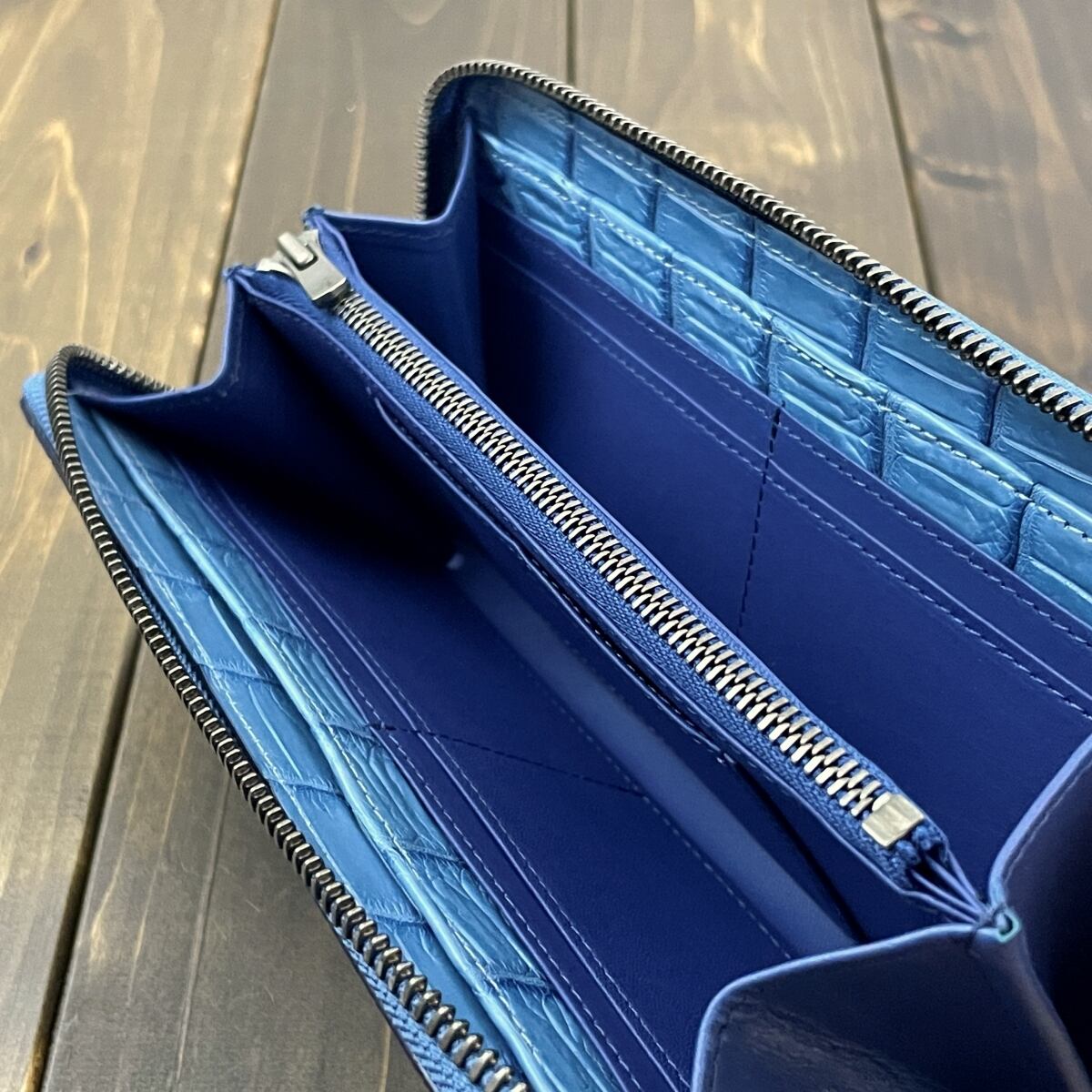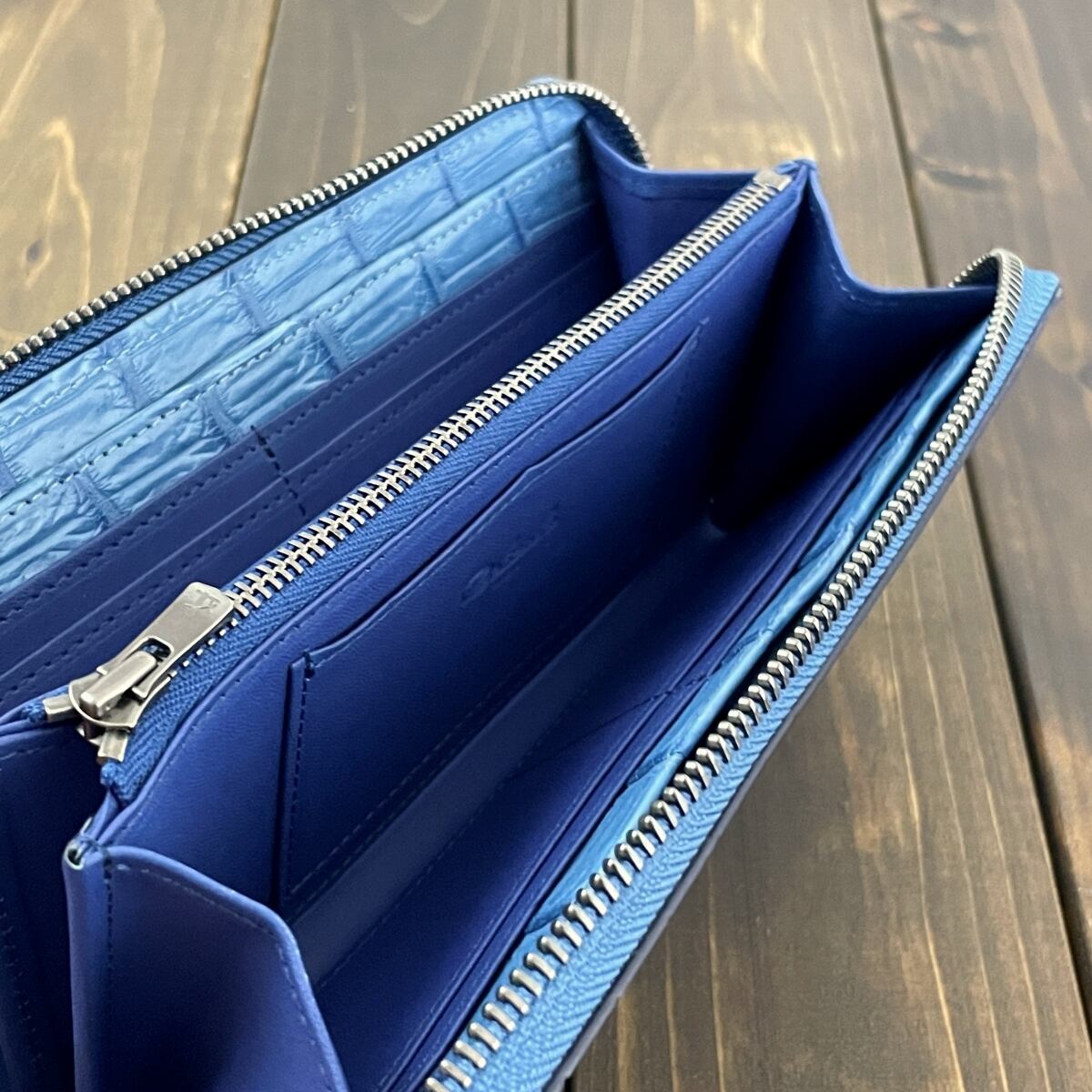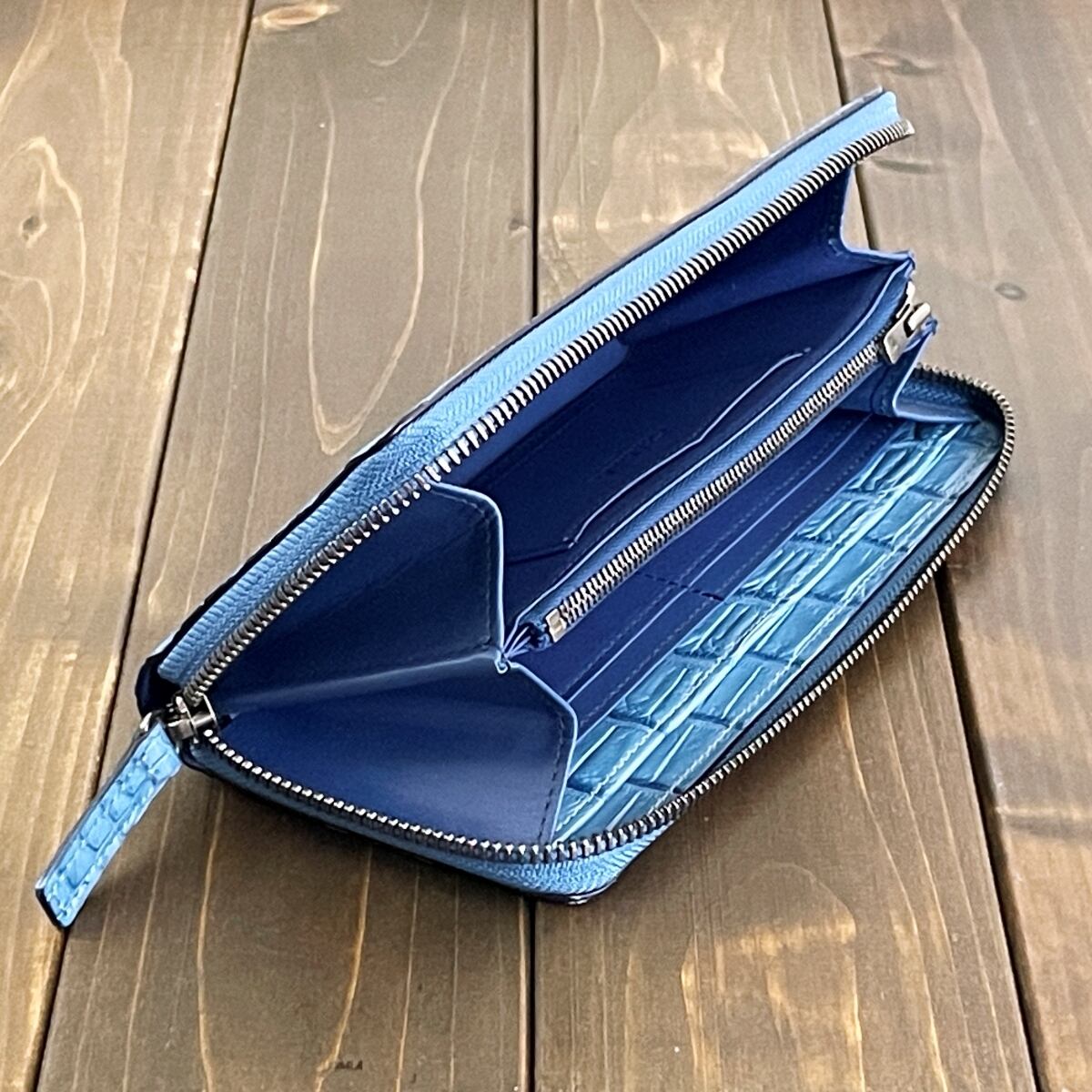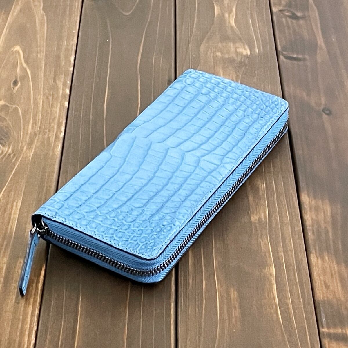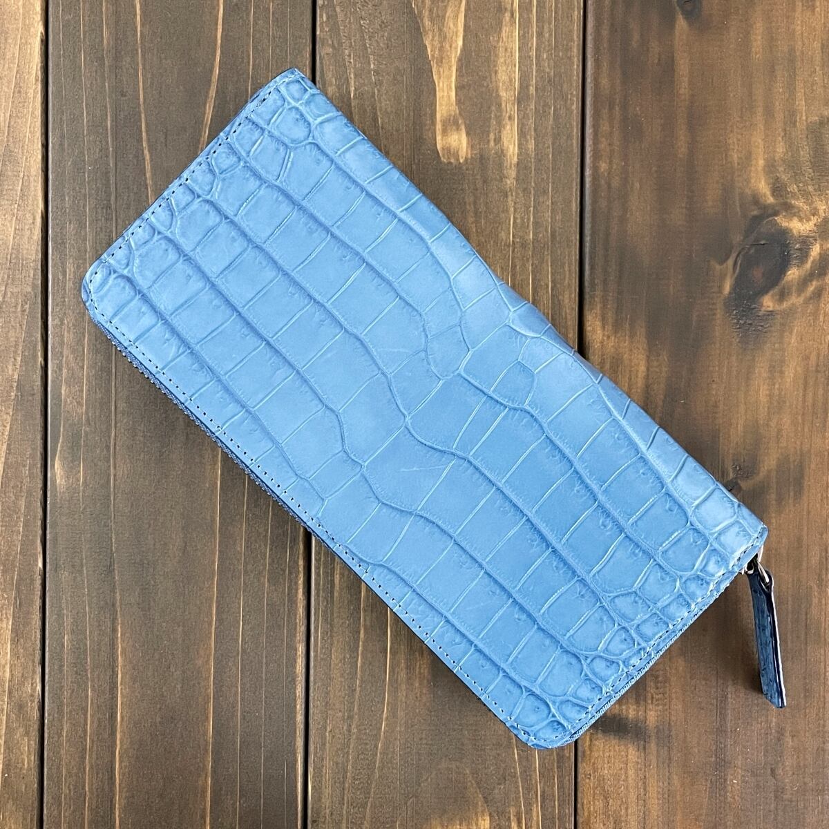 藍染 クロコダイル 長財布 淡藍