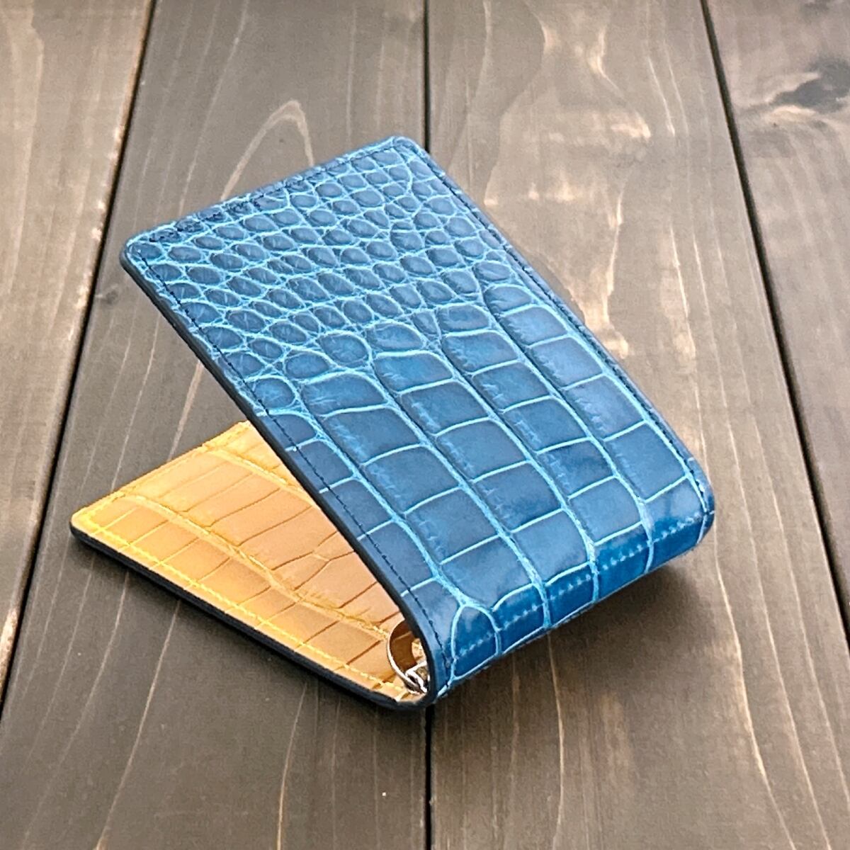アリゲーター × クロコダイル マネークリップ ピーコックブルー