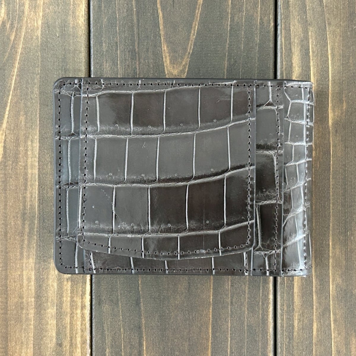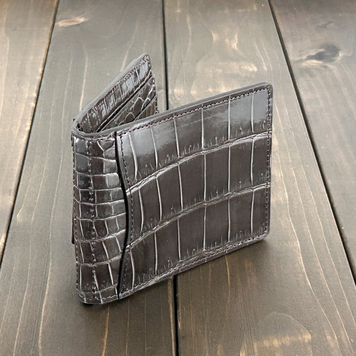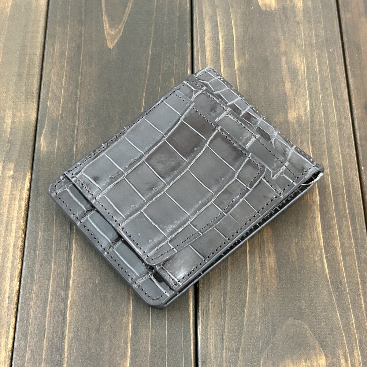 最高級のスモールクロコダイルを惜しみなく使用した、グレージュカラーのマネークリップ。グレージング加工を施すことで、革本来の美しさと艶やかな光沢を最大限に引き出しました。内外すべてをクロコダイルで仕立てた無双仕様は、手にするだけで格別の存在感を放ちます。