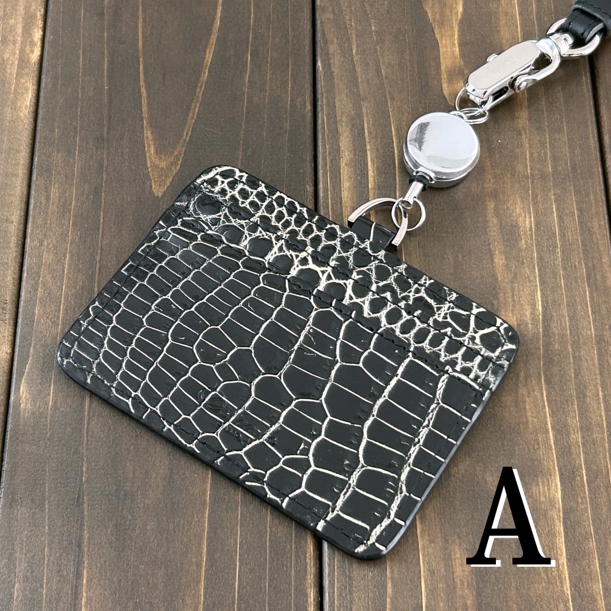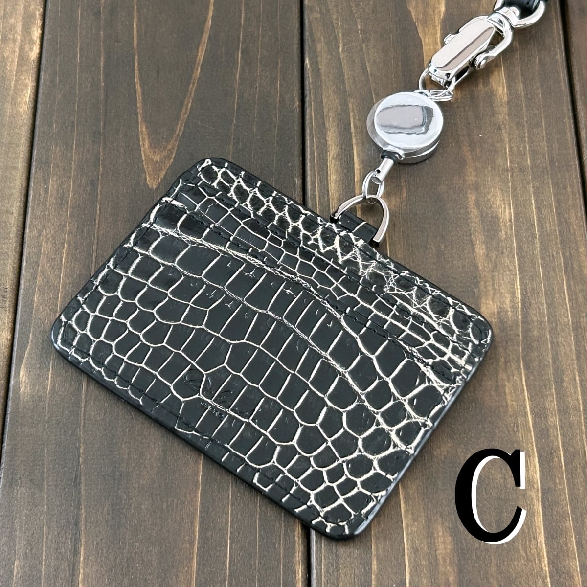 クロコダイル 目地染め IDホルダー ブラック シャンパンゴールド