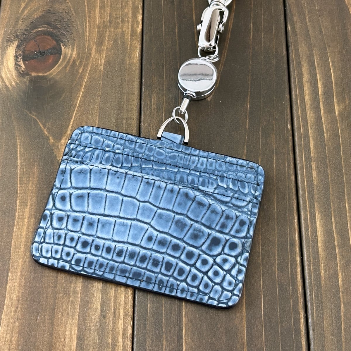 アリゲーター ベロア仕上げ IDホルダー ブルージーン