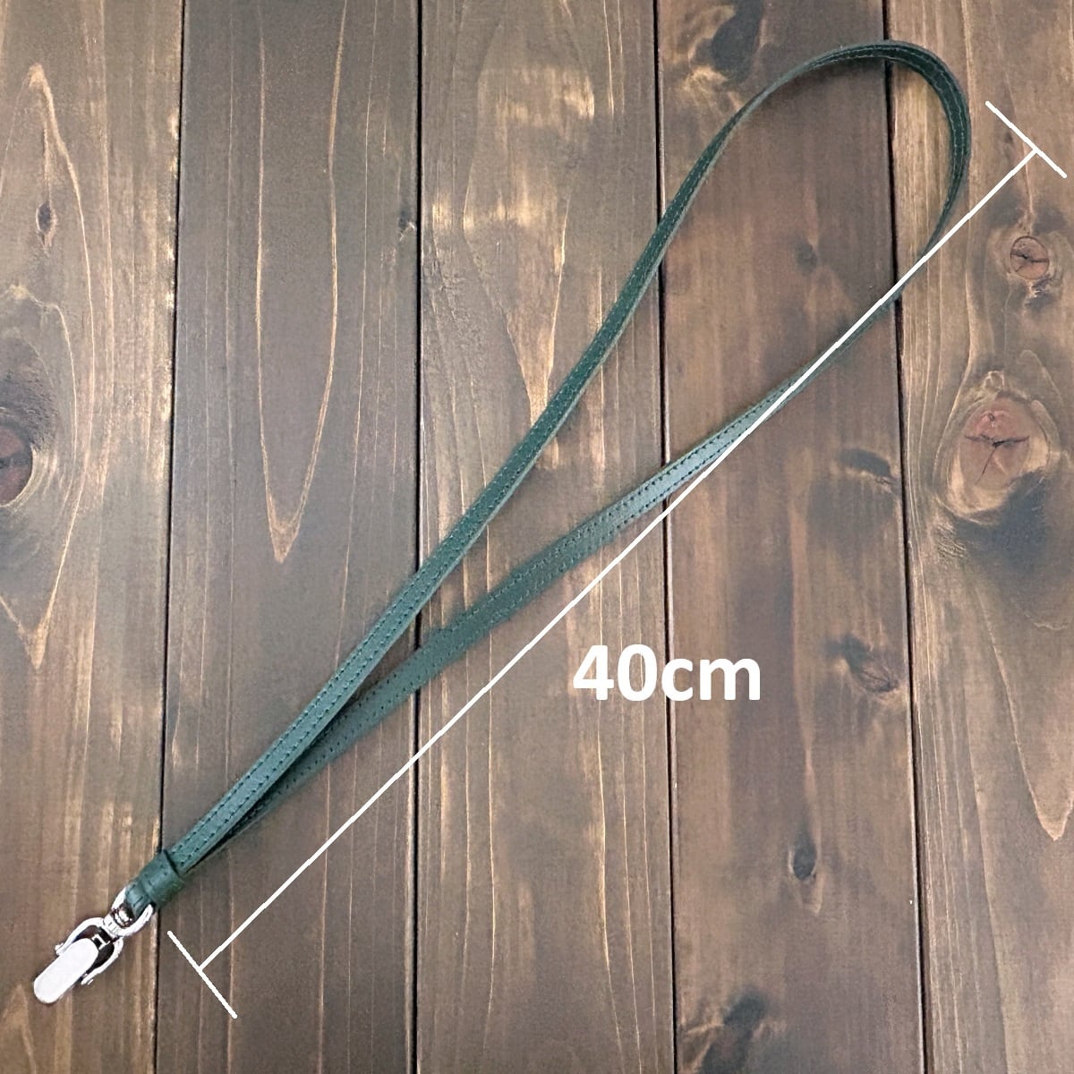 ネックストラップには、イタリア・トスカーナ州にあるLo Stivale社の「ブルガロ」を採用。しなやかさと耐久性を兼ね備えた高品質レザーで、同系色のグリーンがホルダーと美しく調和し、統一感のある洗練された印象を演出します。長さは実用的な40cm。さらに便利なリールホルダーを付属し、取り外しも可能です。裏側にはカードポケットを2つ備え、実用性にも配慮。素材の魅力と機能性を兼ね備えた、スマートにお使いいただける逸品です。