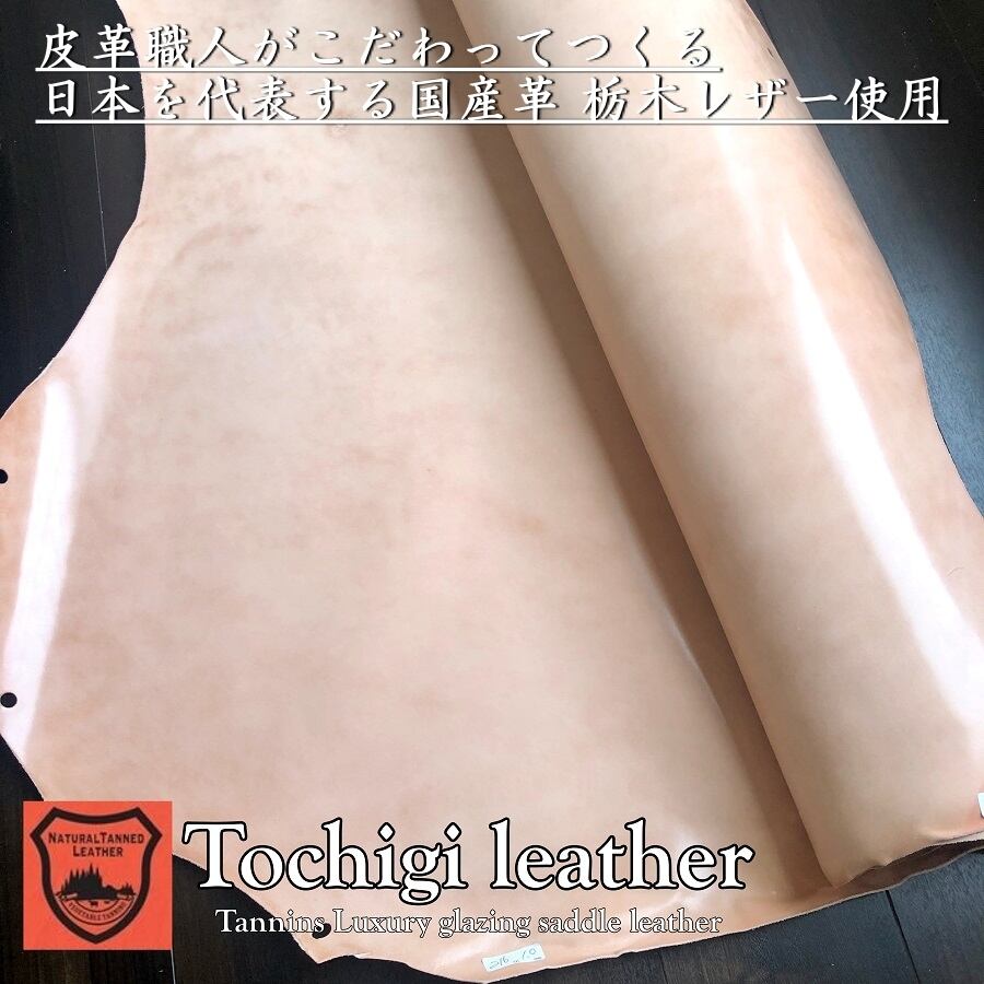 内側には栃木レザーを使用。植物性タンニンで鞣し、グレージング加工されているので艶があり、程良い硬さがある高級サドルレザーです。しっとりとしたさわり心地に上品な輝きの光沢があり、使い込むうちに美しい色味や風合いの経年変化をお楽しみ頂けます。