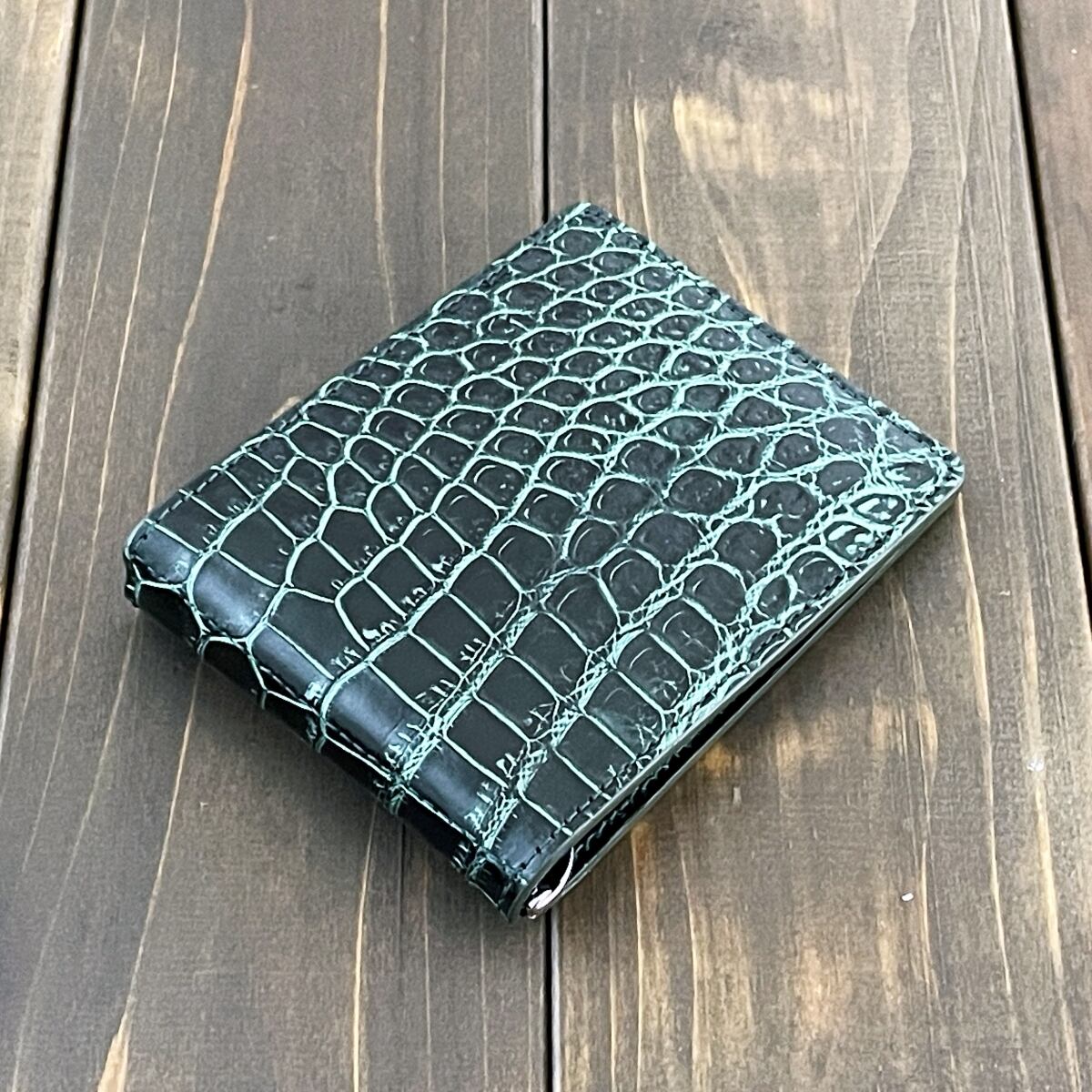 クロコダイル × ルガトショルダー 目地染め マネークリップ グリーン