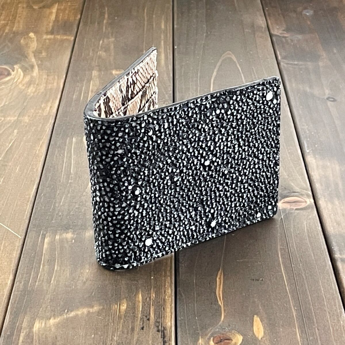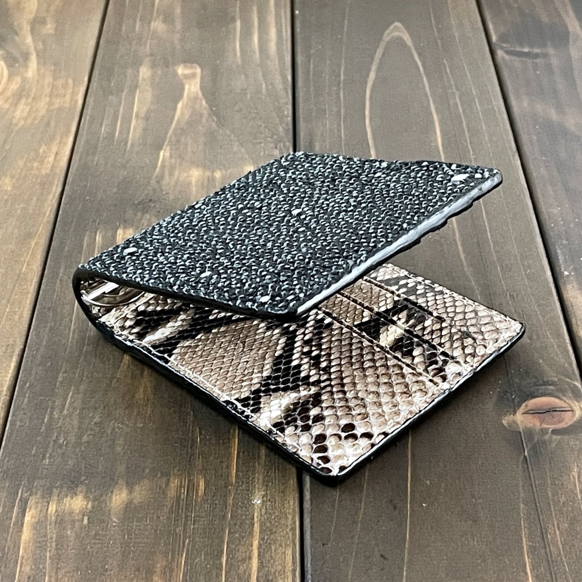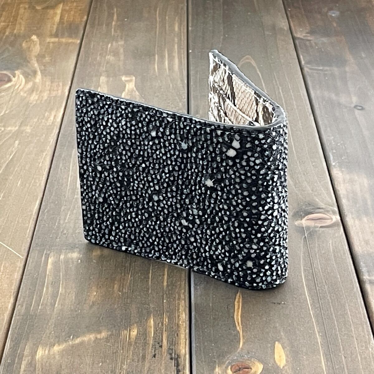 内側には艶加工を施したパイソンを贅沢に使用。スタースティングレイとパイソンをコラボしたレアな一品です。お写真の商品をお届けいたします。