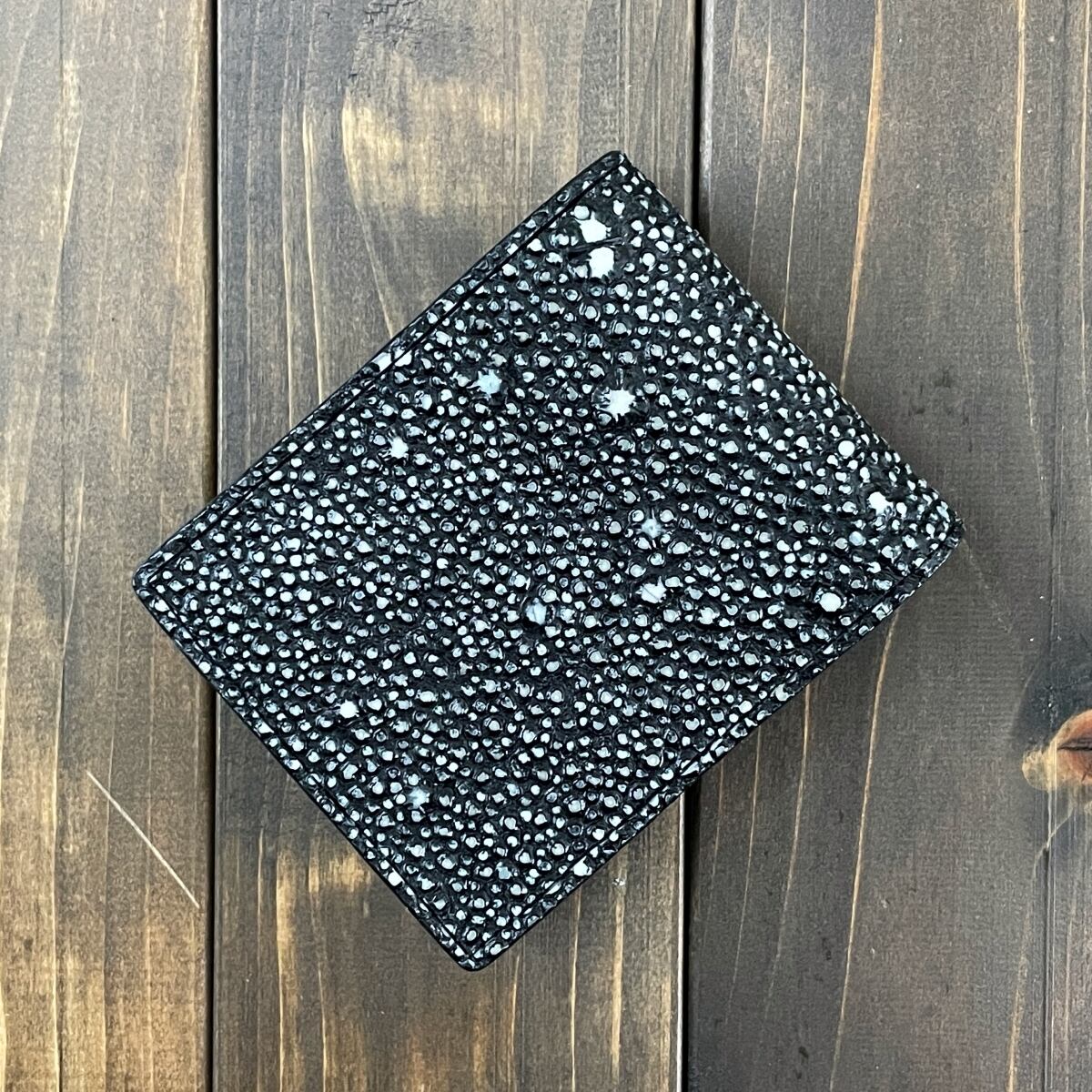 スティングレイは「海の宝石」と言われ、キラキラと輝く美しさに高級感を感じる一品です。その中でも革全体が星形で覆われているものをスタースティングレイと呼び、稀にしか獲れない本当に珍しいレアものです。別名「梅花皮鮫」とも言われ、江戸時代に日本刀の鞘(刀を納める筒)などもに使われた歴史ある貴重な革となります。