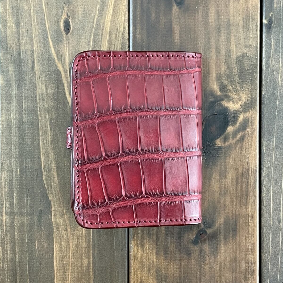 最高級アリゲーター(ワニ革)で製作したカードケースです。艶マッド加工を施した立体感のあるディープレッドのアリゲーターを使用。内側は同アリゲーターとダークレッドのスムースレザーで仕上げました。お写真の商品をお届けいたします。